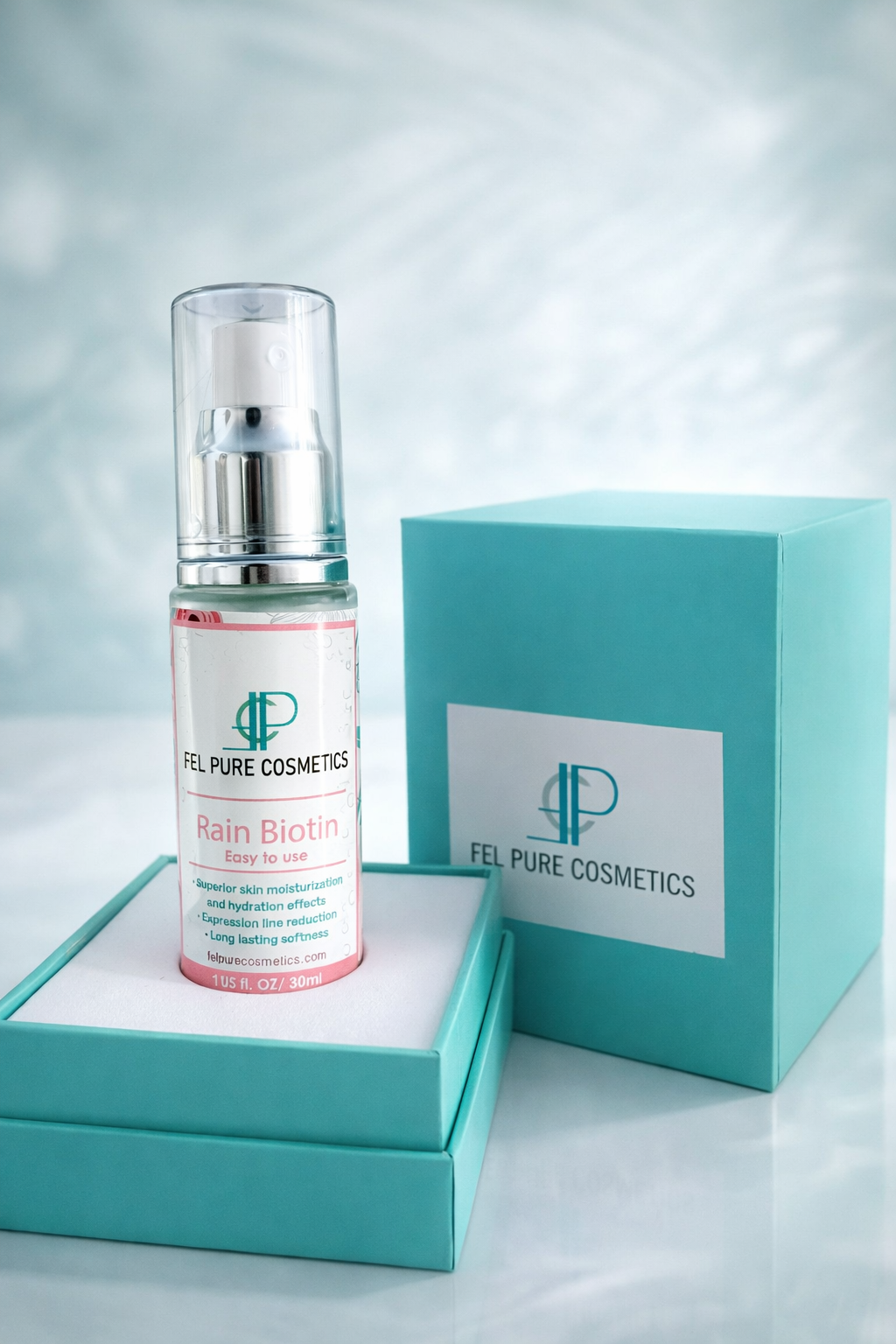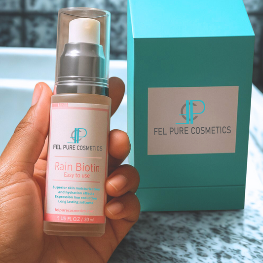At Fel Pure Cosmetics, we create products that make your beauty routine easy and effective. Our flagship product, Rain Biotin, is designed for everyday use, delivering nourishment, hydration, and vitality to your skin. Clean, minimalist, and science-backed, our formulas are made to work—not just decorate your nightstand.